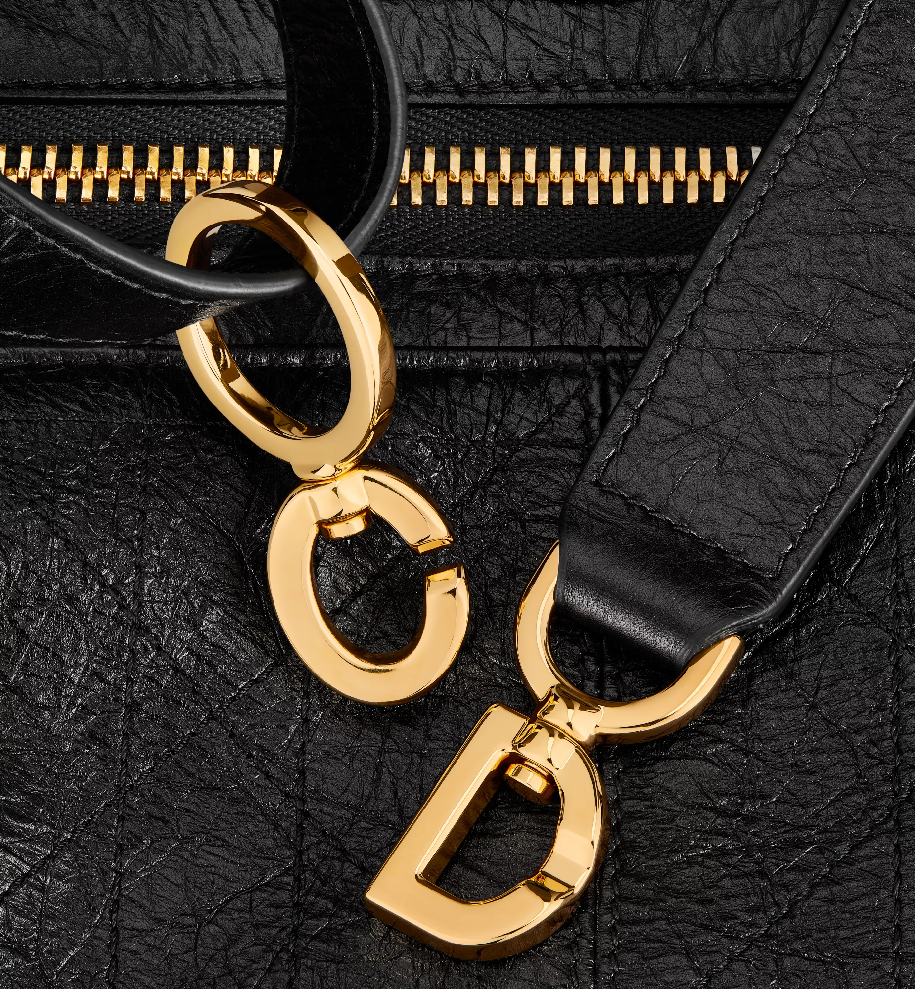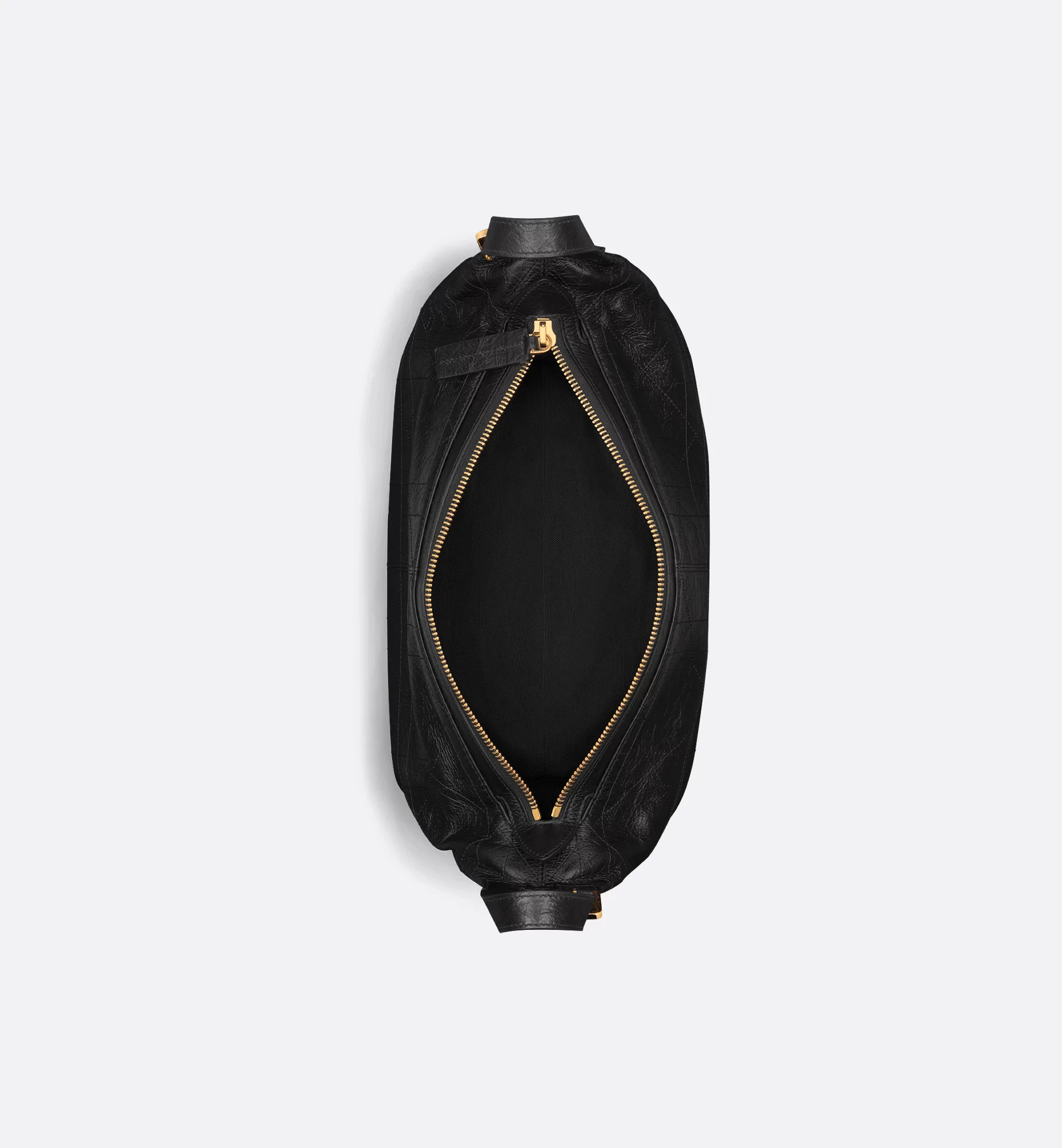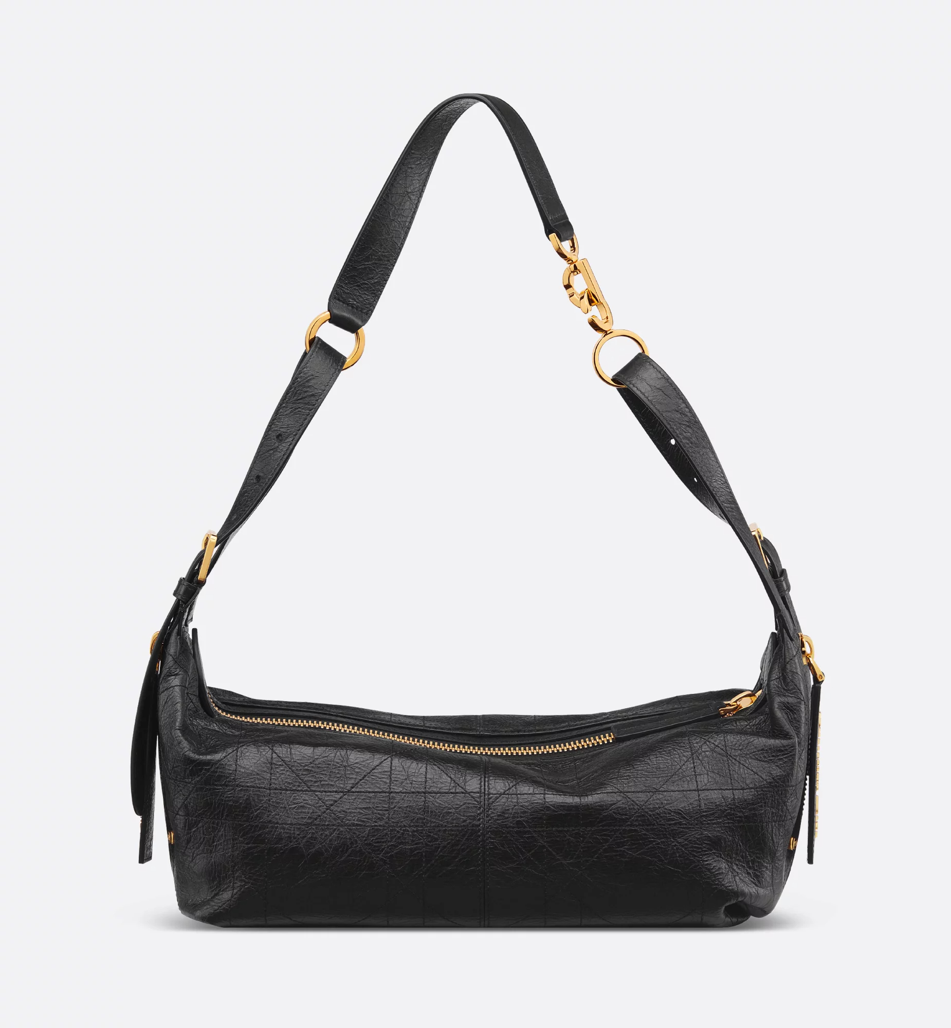New for the season and presented at the Spring-Summer 2025 Ready-to-Wear Fashion Show, the D-Journey bag offers a new take on the hobo silhouette with a modern supple design. The style is crafted in black crinkled calfskin with Flat Macrocannage topstitching in an interpretation of the House’s iconic motif. The main compartment is completed by a zip pocket, while two decorative side pockets showcase a large leather pull with the Christian Dior Paris signature. Featuring adjustable leather top handles and a leather strap, the medium D-Journey bag can be carried by hand, worn over the shoulder or crossbody as a daily companion.